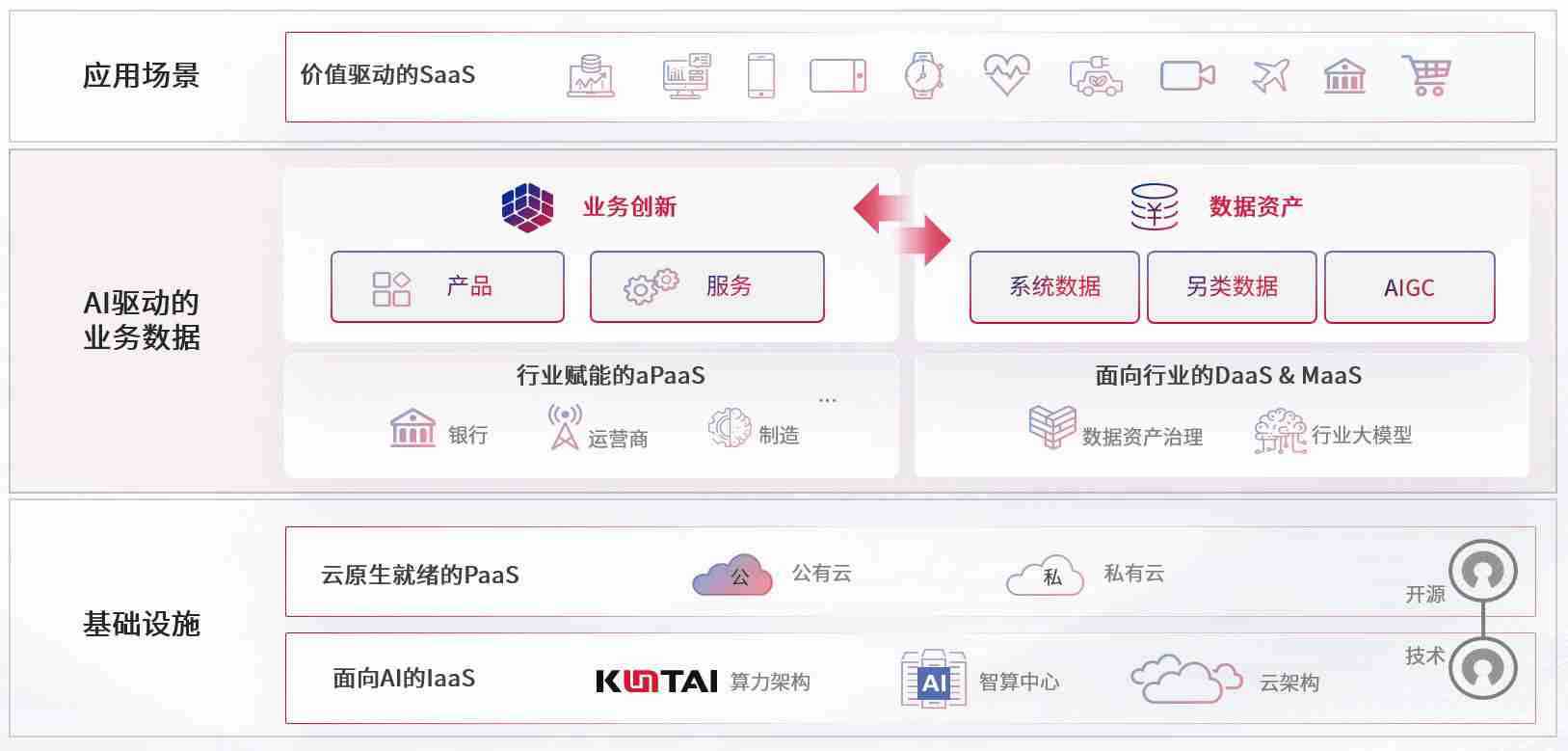 数字时代,,,,围绕企业数字化转型的关键要素,,J9.COM数码开创性的提出数云融合战略和技术体系框架,,着力在云原生、、数字原生、、、、AI原生和信创产业上架构产品和服务能力,,,为处在不同数字化转型阶段的快消零售、、、汽车、、、、金融、、、医疗、、、、政企、、、教育、、、、运营商等行业客户提供泛在的敏捷IT能力和融合的数据驱动能力,,构建跨界融合创新的数字业务场景和新业务模式,,,助力企业级客户建立面向未来的核心能力和竞争优势,,,全面推动社会的数字化、、智能化转型升级。。